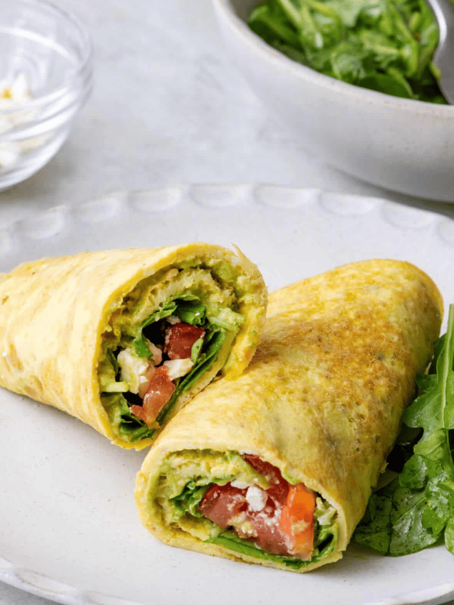 And if this is too much work: scramble eggs with cottage cheese, add spinach and mushrooms. Top with Salsa, wrap it up. Boom!